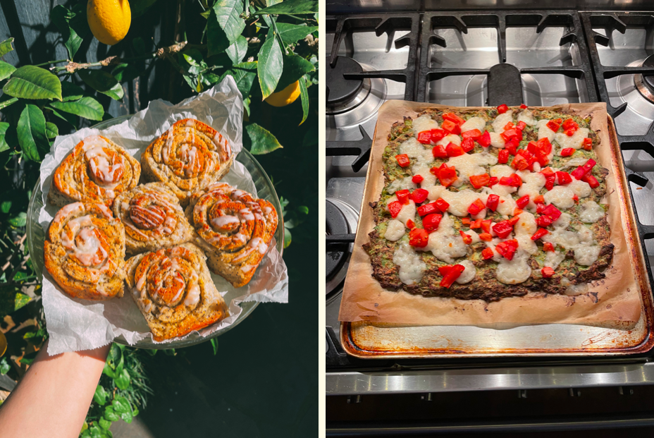 I only pushed myself to make a couple of things, inspired by recipes I saw others making - Vegan & Gluten-Free Lemon Poppyseed Scrolls and a Broccoli Crust Pizza.