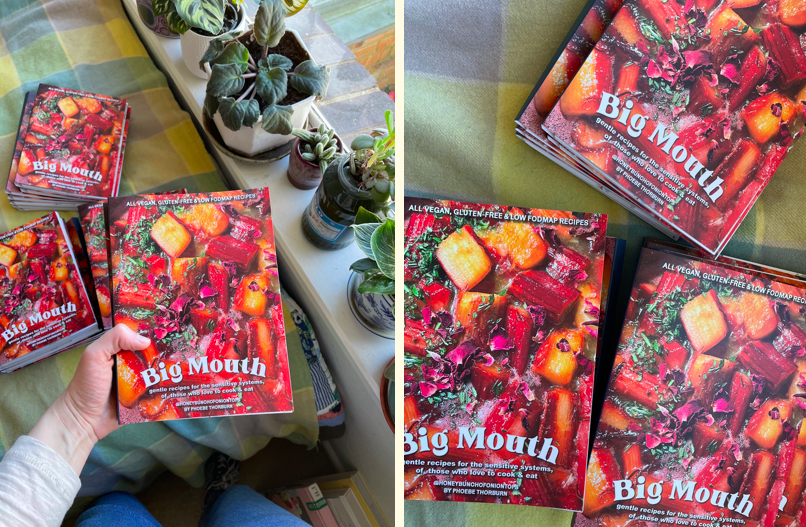 I had another very smol run of Big Mouth (my cookbook of gentle vegan/gluten-free recipes for sensitive systems) printed this week, woo! You can find them in The HBOT Shop, or re-stocked in Brunswisk Bound in Melbourne.