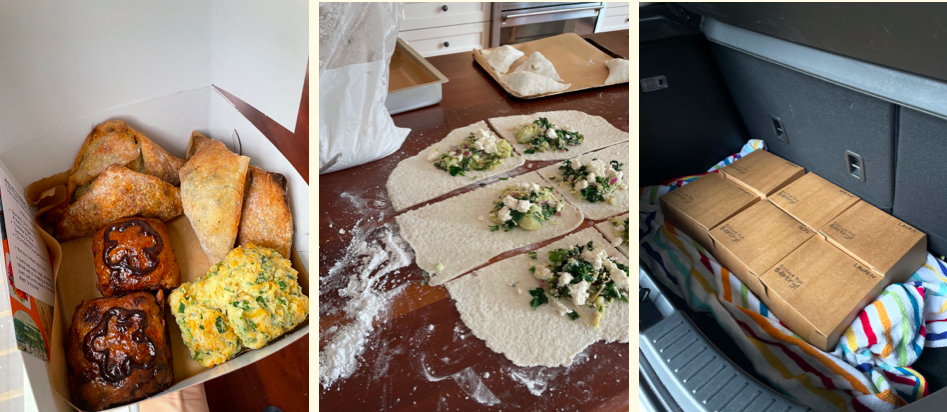 I fitted in another microbakery mixed box flash sale last week - this time with my savoury YAY feta & spinach parcels and cheddar chive scones. The box felt nice and seasonal. It was a gloomy drizzly day when I delivered them, and putting a fresh box of warm goodies on people's doorsteps over Melbourne felt like I was doing a little good hehe.
