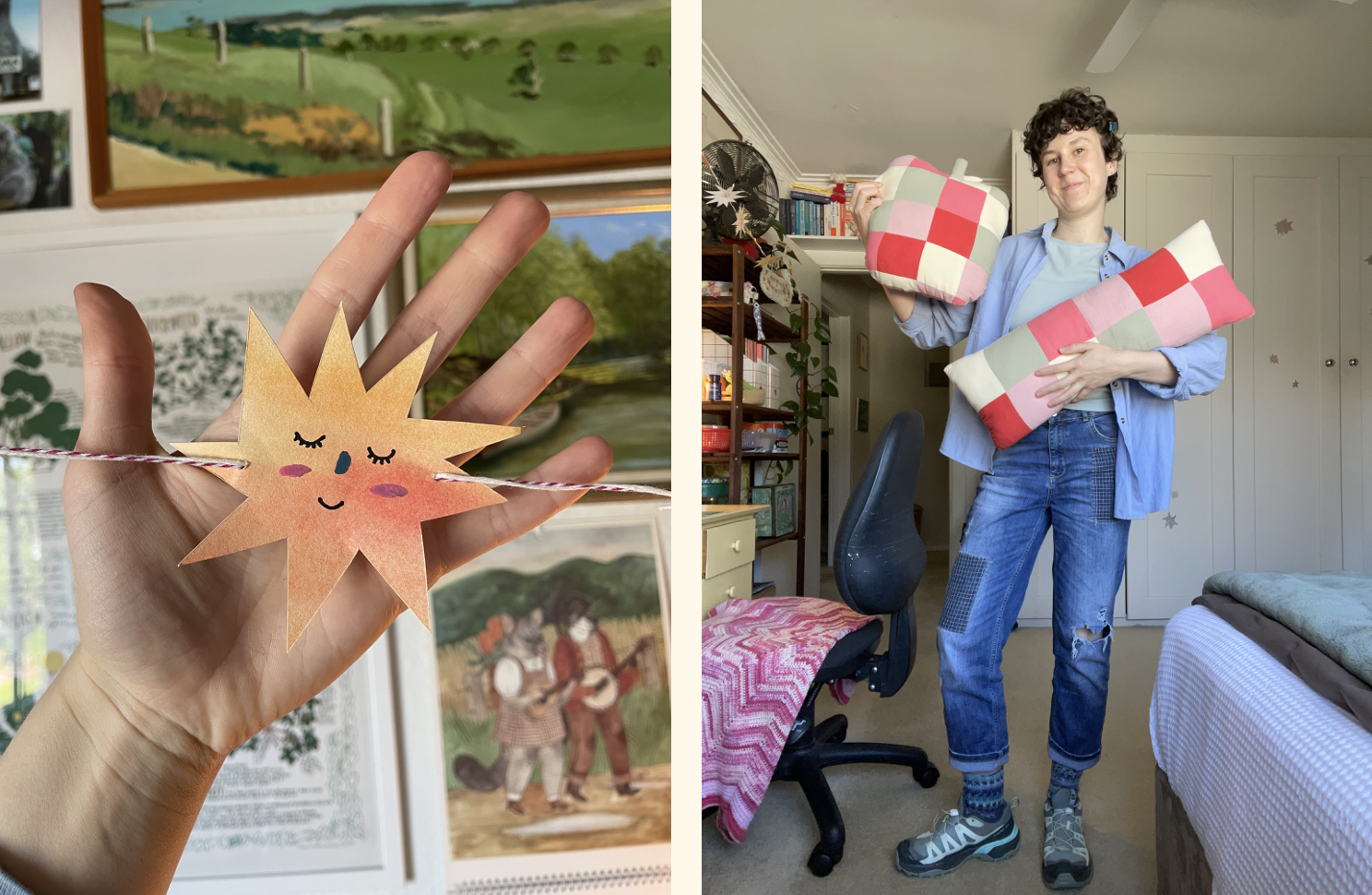 Anyway, I started with the star pillow above, then make these vintage IKEA kids looking patchwork pillows below (the left one's meant to be an apple). I've got like 3 projects in the works currently, but hopefully next month I'll have made my own practical item of clothing!