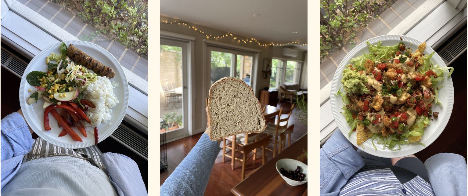 L–R: an impossible sausage involving dinner (sausage was just ok), Aran Goyoaga's gluten-free sandwich loaf (similar recipe) and this month's website recipe – nachos!