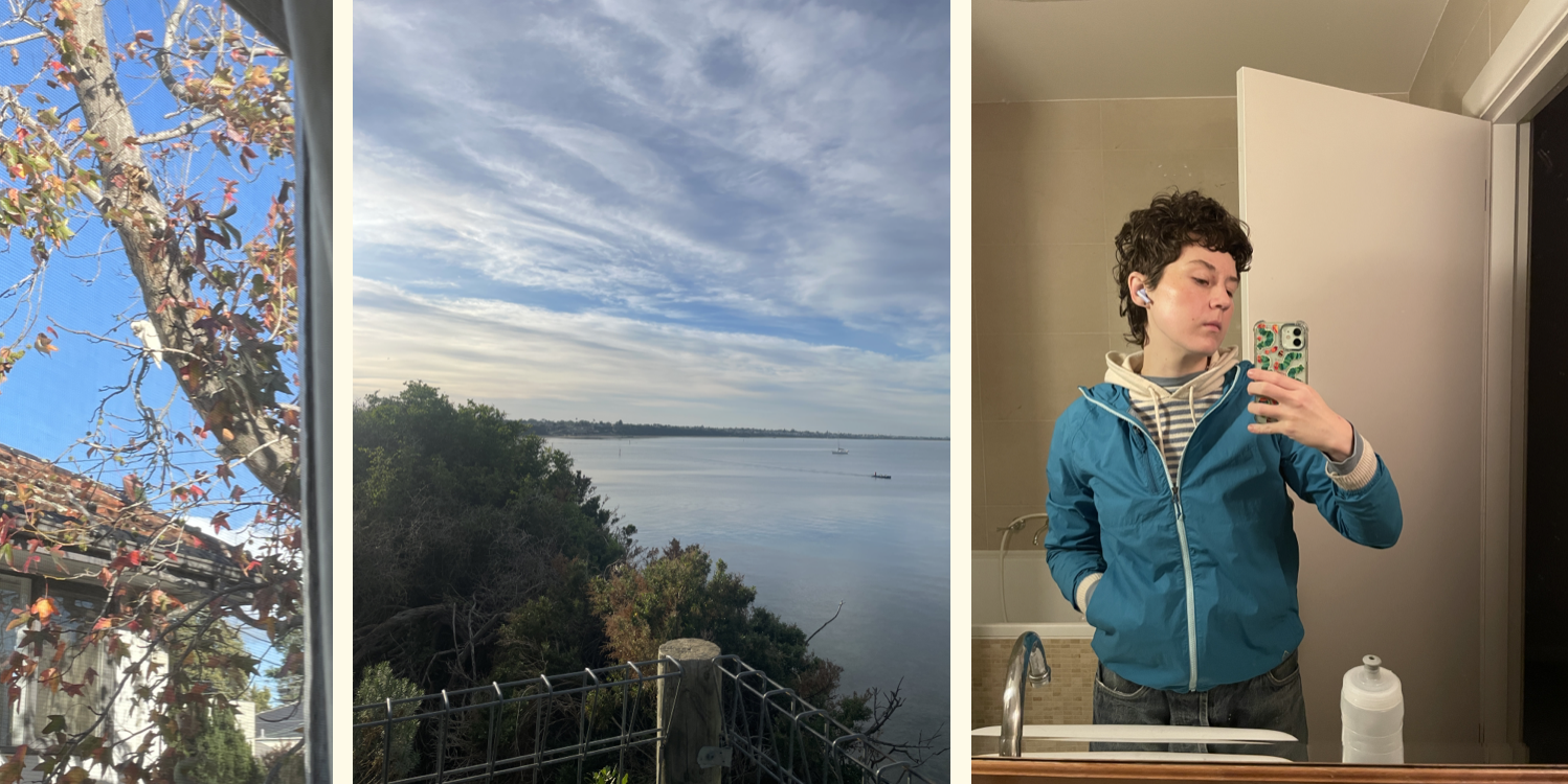 This month really felt like Autumn and I can't remember the last year I enjoyed it this much. The Corella's have been by to eat the seed pods on our Maple tree by my window (left image), I've made oodles of delicious dinners, we've had crisp mornings and many show stopping sunrises. I got a new windbreaker at a consignment store and it's helping me feel more like myself on my walks with Merlin.