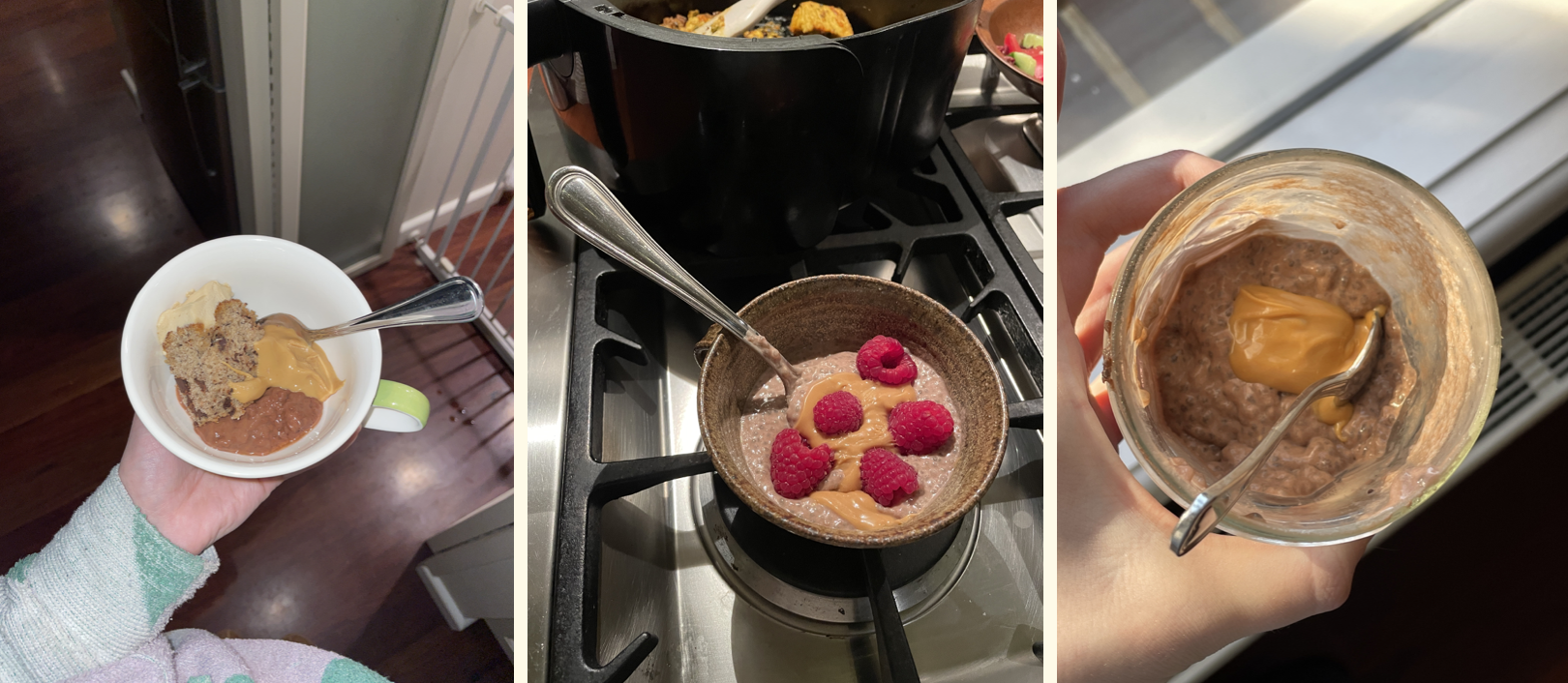 Left-Right: Been on a chia pudding kick! Mainly because it's a neat little dessert that also helps you stay regular – and since getting sick a year ago it's something I now have to pay attention to (boo!). Anyhoo, I'm making my own by mixing 1 full of plants chocolate pudding with ¾ cup dairy-free milk and stirring through 2 tbsp chia seeds. That lasts me 4 desserts.