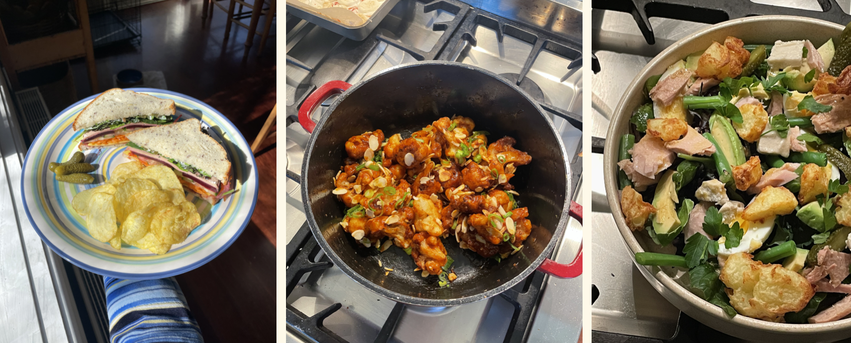 I'm still on the Vegan Ham & Cheese Salad Sandwich train (TOOT-TOOT!) & loving every minute. So fresh and fun to eat. I made Honey & Chilli Crunchy Cauliflower and it was smashing! Need to figure out an air-fryer version so it's simpler to do. Also this Nicoise Salad I made with twice roasted potatoes was a 10/10!