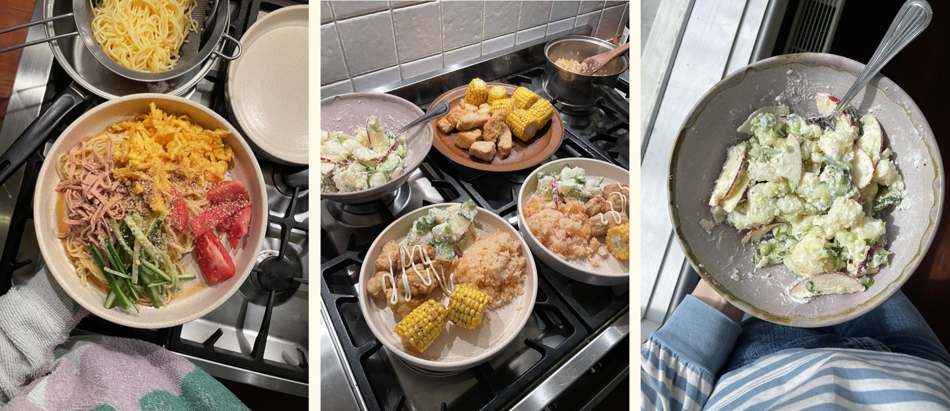I have been making lots of homestyle Japanese recipes from Rie McClenny's book Make It Japanese. Hiyashi Chuka (Japanese Cold Ramen), Tofu Karaage, Japanese Potato Salad and Omurice. All SO DELISH!