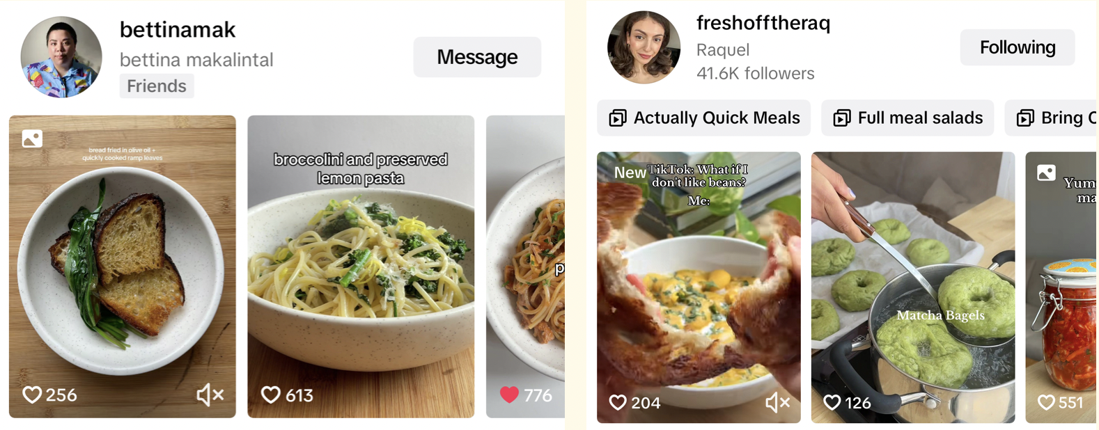 Bettinamak is probably my favourite smaller-er food creator on TikTok! They share what they've been eating. Their food's both humble (a bowl of beans or an egg over rice) but could easily be found in any fancy-pants Melbourne cafe. I want to eat everything they share. It always looks SO nourishing and comforting.