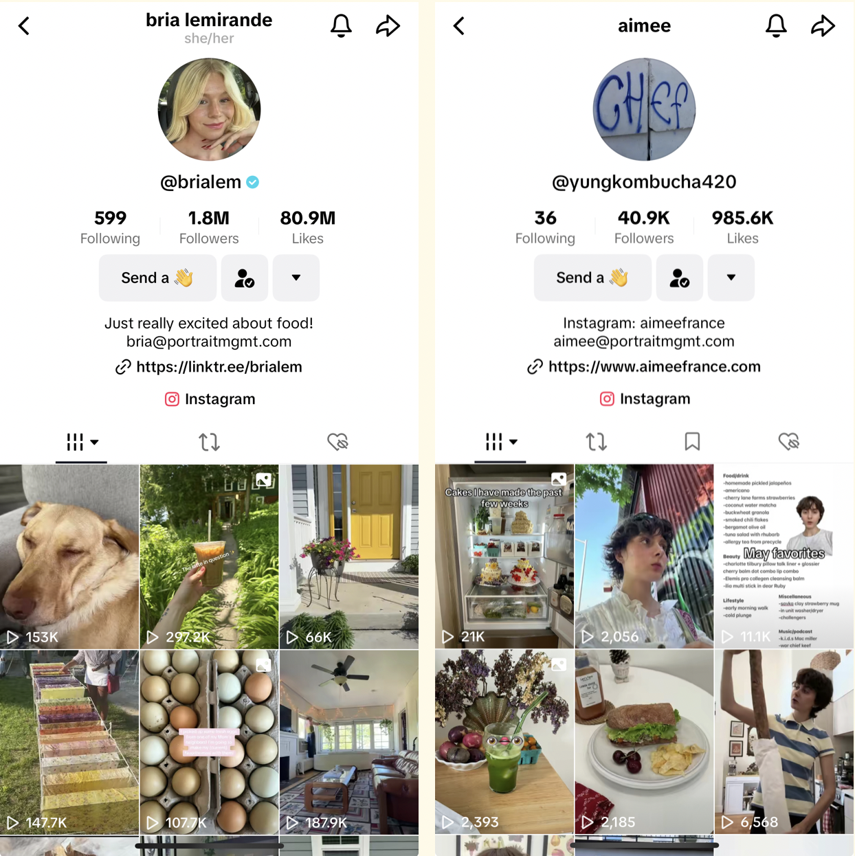 Bria Lemirande is probably my favourite person on the whole wide internet. As their tag line says, they're just really excited about food! It's true, I feel like Bria's enthusiasm for food is the closest I've seen to mine. She radiates pure joy, is a triplet, shows what she's cooking/enjoying, recently adopted a dog that looks like her and has really sweet fashion/home style. Her account is a total pick me up.