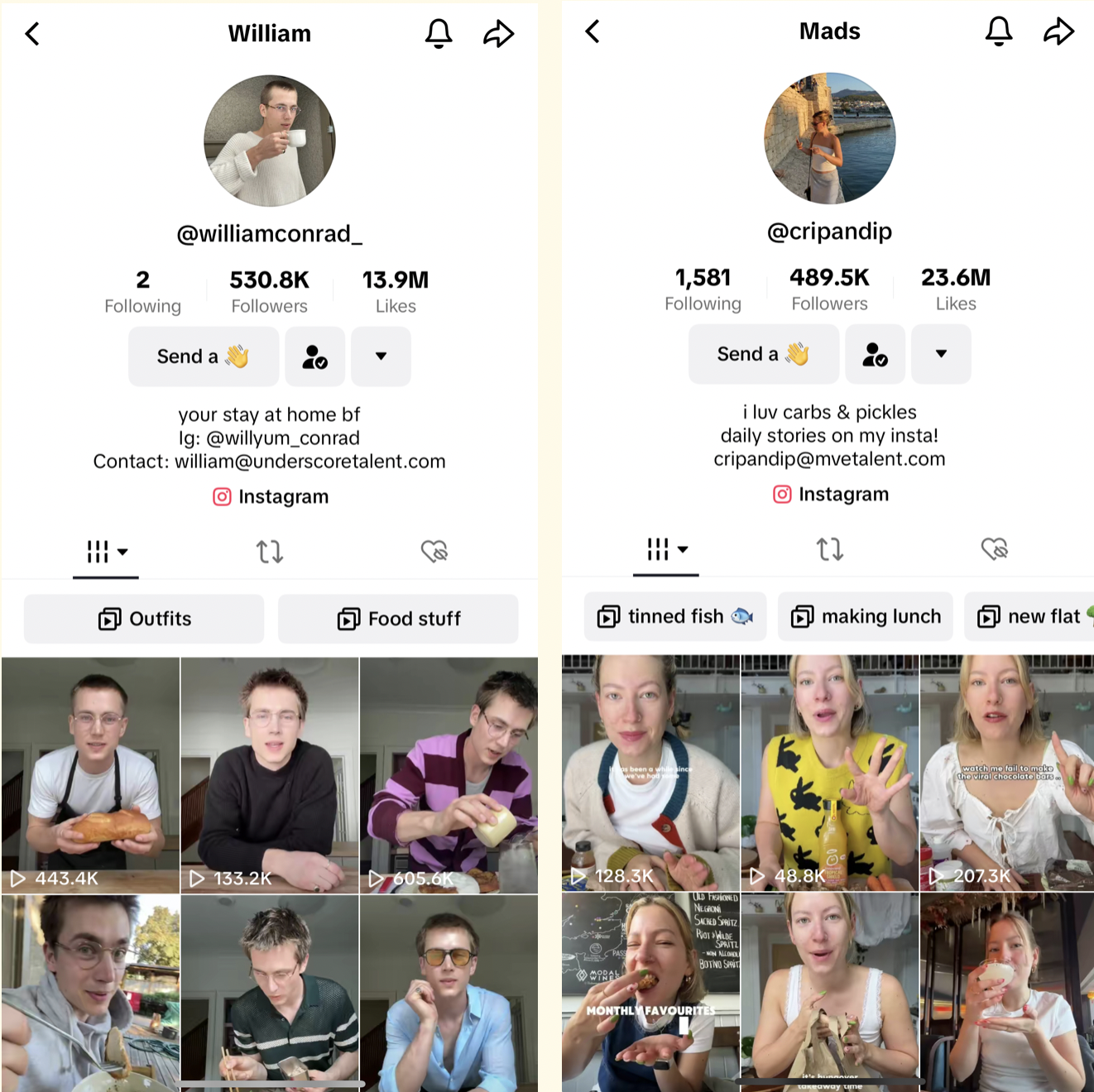 Ok hehe William's videos are specific. He's an incredible cook and it's him plating up what he's made as if he's serving it to YOU, the viewer. It's a little flirty, sensual and mesmerising. I like it too because it's lacking context compared to other food accounts, which often makes me want to make the same thing.