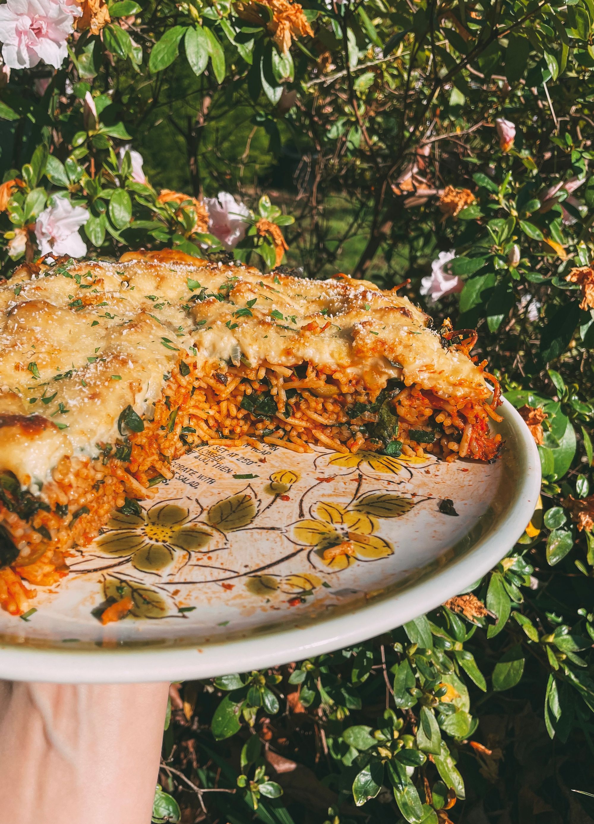 It's a recipe that's more than the sum of its parts. Where the simplicity of it is what makes it so great - chewy marinara spaghetti, baked into a delicious cheesy bechamel. Use a really good quality passata/pasta sauce, the fresher the better. To serve neatly, bake in a spring form tin & let sit for 20 minutes once it's come out of the oven, like you would with a lasagna. Bon appetit!